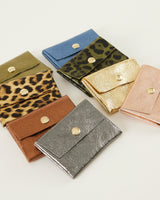 Monedero de piel con acabado metalizado. Compartimento interior doble perfecto para tarjetas y monedas. Material flexible y cierre de imán (acabado oro de acero inoxidable), muy cómodo de abrir y cerrar continuamente.