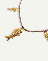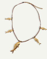 Collar corto de cuerda con mini charms de peces