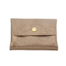 Leather wallet with metallic finish. Double interior compartment perfect for cards and coins. Flexible material and magnetic closure (gold stainless steel finish), very comfortable to open and close continuously.