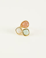 Anillo de acero y piedras en color verde, blanco y nude.