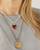 Collar largo de acero con medalla en color oro o plata con estrellas y circonitas blancas.