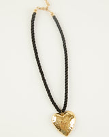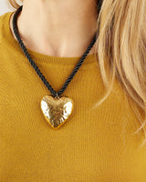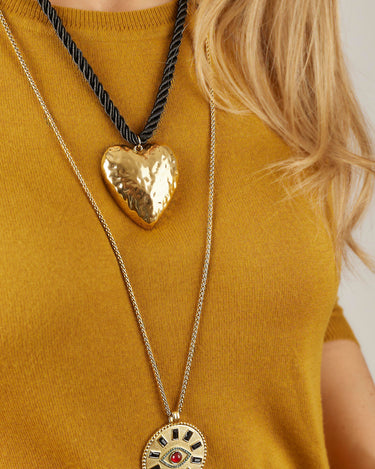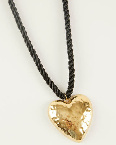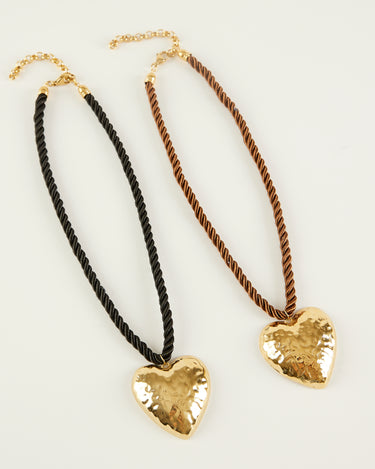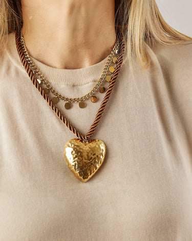 Collar corto de cordón en diferentes colores con maxi corazón de acero.