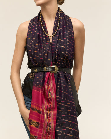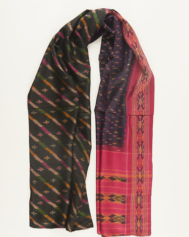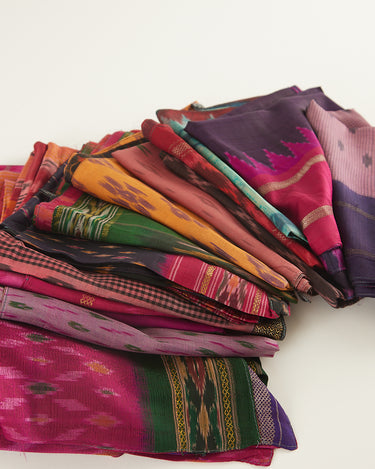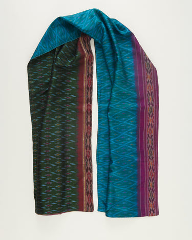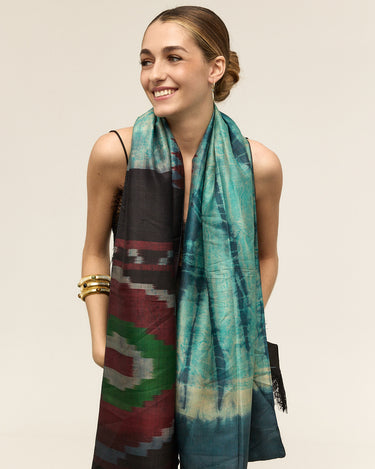 Pashminas tejidas a mano que destacan por sus colores y patrones únicos. La técnica Ikat consiste en teñir los hilos antes de tejerlos, creando esos diseños geométricos y difusos que parecen flotar sobre la tela.