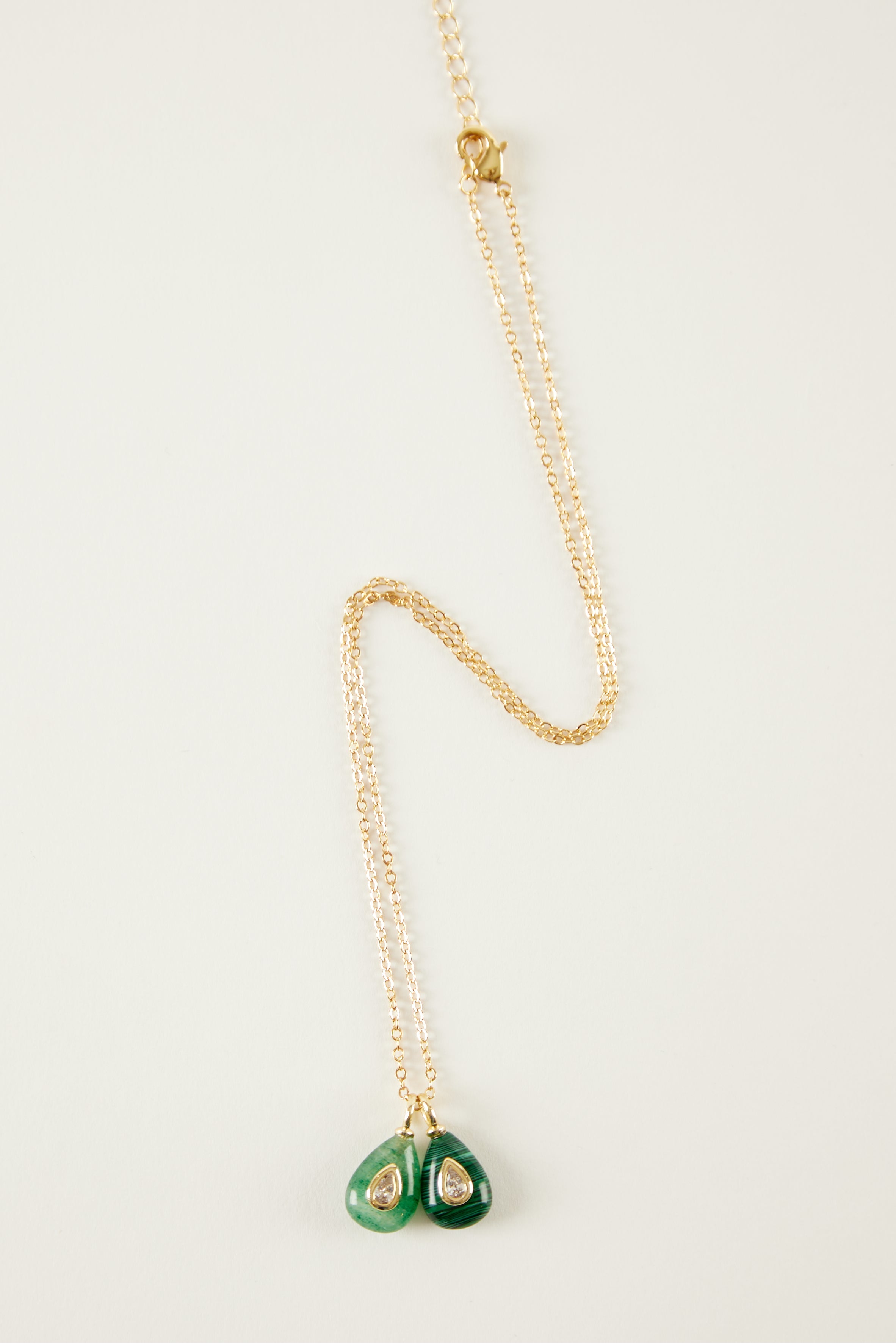 Charm en forma de lágrima con anilla en acabado dorado y cuerpo en piedra natural.